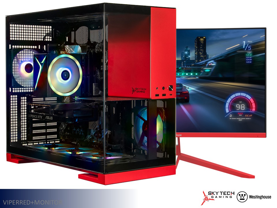 Order the red Skytech+Westinghouse Viper Gaming Desktop now and dominate every match with powerful performance!