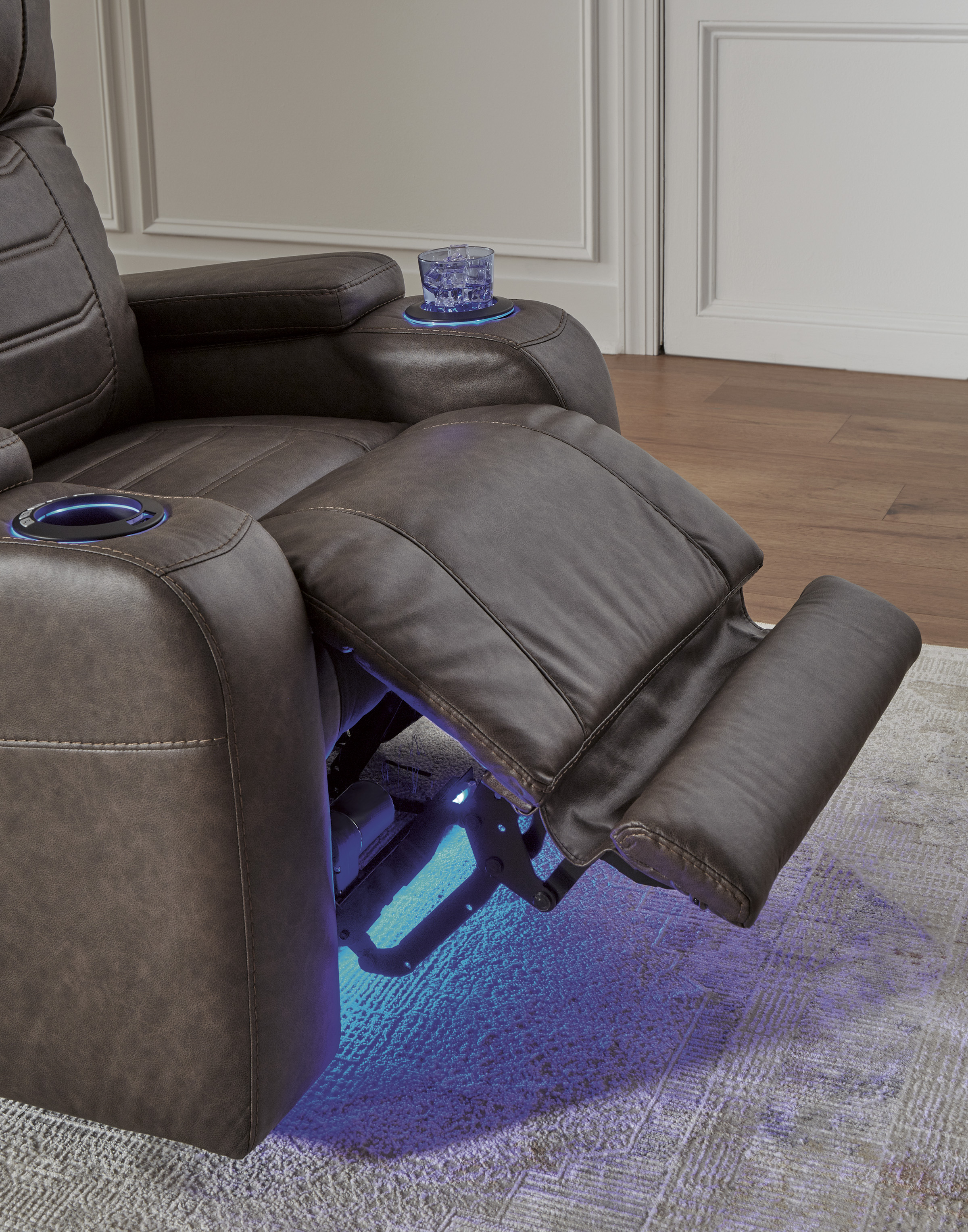 You will rent smart with RentMart when you bring the Ashley Schooner Rocks Umber Power Recliner into your home! Bring modern comfort and rich style into your living space with the Ashley Schooner Rocks Power Recliner - Umber (With LED Lighting) [Model 1610413]. Wrapped in a warm umber upholstery, this recliner combines cozy cushioning with high-end functionality, offering the perfect seat for relaxation. With smooth power reclining at your fingertips and a soothing rocking motion, it’s designed to keep you comfortable whether you’re watching a movie, reading, or simply unwinding. The built-in LED lighting adds a contemporary glow, making it as stylish as it is functional.